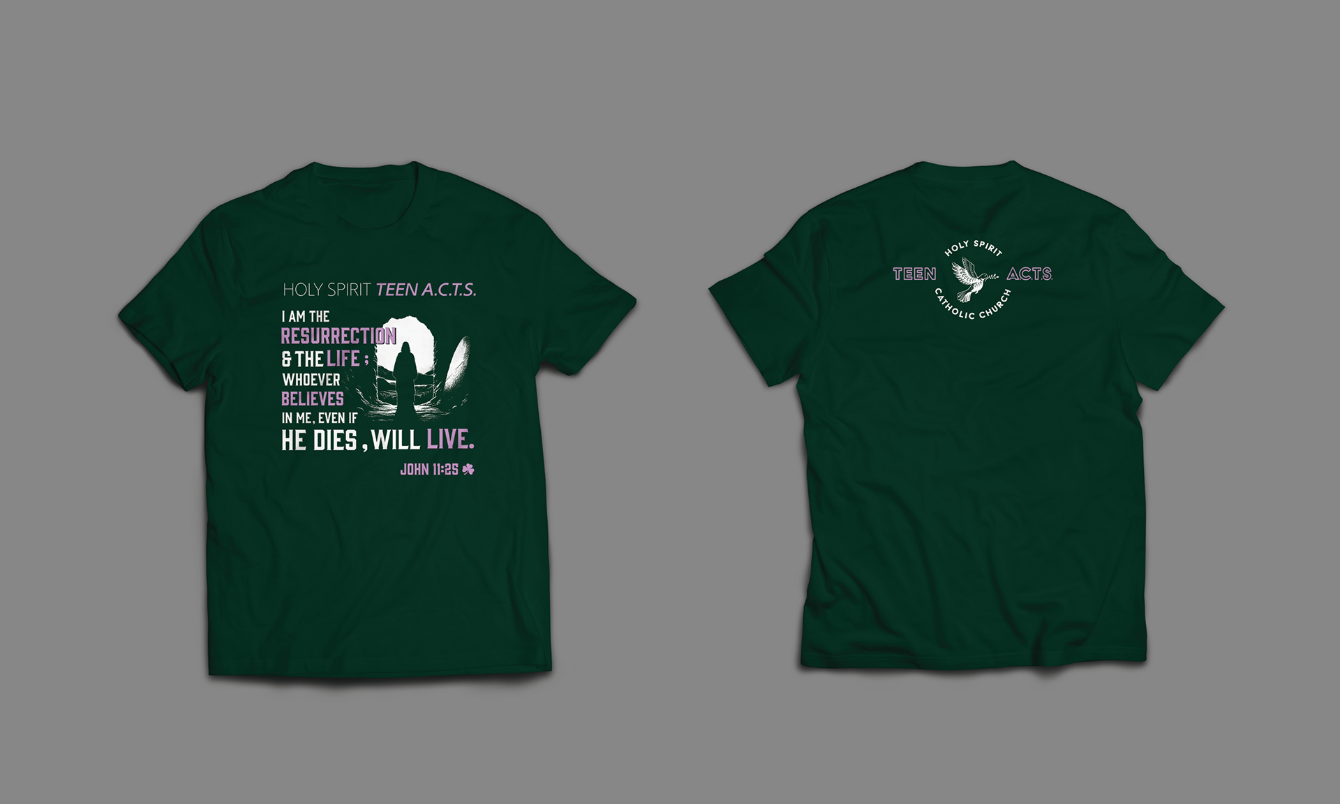 I was commissioned by the Holy Spirit Catholic Church to create a T-Shirt design for their teen's retreat, which is themed after the story of Lazarus.